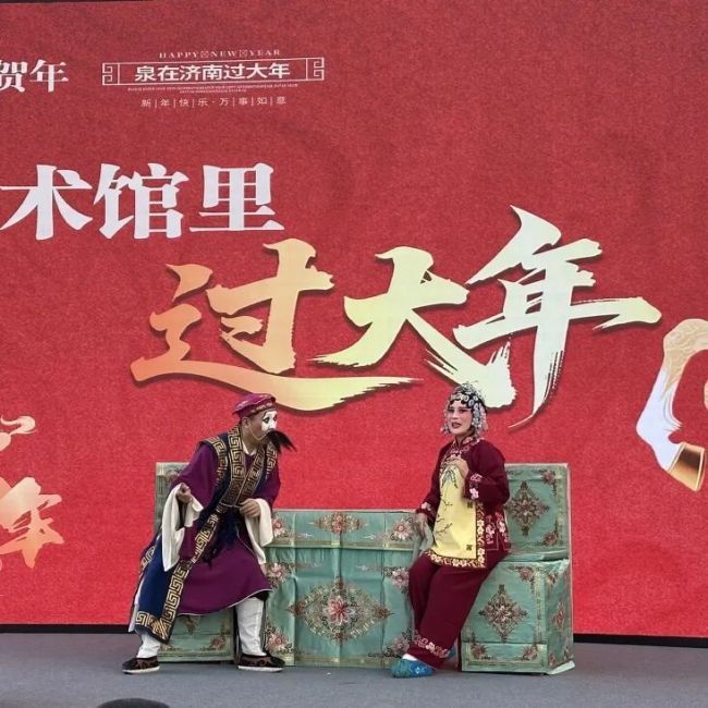 活动当天,美术馆洋溢着浓浓的新春气息,济南市吕剧院的专业演员身着精美戏服登场演绎优秀吕剧剧目《墙头记》。演员们唱腔委婉动听、身段灵动传神,将剧中人物的情感与性格展现得淋漓尽致;地道的齐鲁乡音与精湛的表演技艺,赢得了现场观众的阵阵掌声。现场欢声笑语不断,传统文化的暖意与新春的喜乐相互交融,为市民留下了难忘的文化记忆。