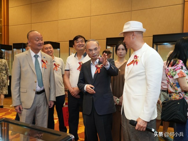 华住集团创始人季琦(居中)、新加坡著名企业家黄亮杰夫妇等人在展览现场