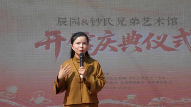 辰园主理人徐嘉敏率先登台,分享艺术馆“诞生故事”。她回顾辰园创办以来“十年磨一剑”深耕优秀传统文化的初心,也谈及与钞氏兄弟的结缘契机——以“陶”为纽带,双方因对传统陶瓷艺术的热爱与创新追求一拍即合。她珍视这段合作,更期待艺术馆未来能持续为居民提供近距离接触艺术的机会,让文化魅力渗透社区日常。