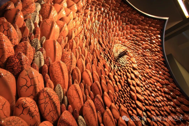 ▲《惊蛰》,陶瓷、金属,200×200×310cm,2021年壹美美术馆