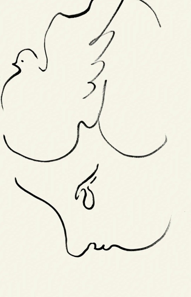 鸽子与少女往往人鸽合一,成为张开翅膀的和平天使。少女的造型有时参考了敦煌壁画飞天(他曾经绘制动画片《九色鹿》),但更多借鉴了西方基督教绘画的天使形象,近似更加简化的马蒂斯的裸女,包括他的《母子图》也类似西方绘画的《圣母子》。刘巨德的巨幅水墨画《光的儿女》好像蒙古民歌长调,变幻的光影似乎在演绎老子《道德经》“道生万物”恍惚迷离的混沌状态。其中可以发现作者偏爱的象征性情感符号——少女、鸽子和奔马,正如他的诗歌所描述的“生命是一团混沌的光亮”。