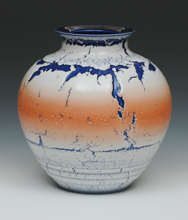 ▲陈烈汉裂纹釉《冰裂弦纹瓶“冬雪”》2008年北京怀柔