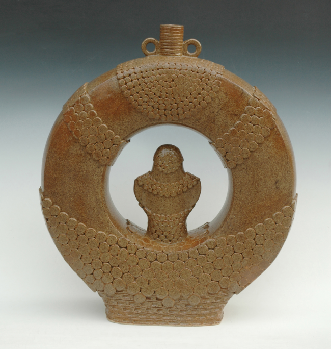▲陈烈汉陶艺《鱼跃双耳扁瓶》2006年北京怀柔