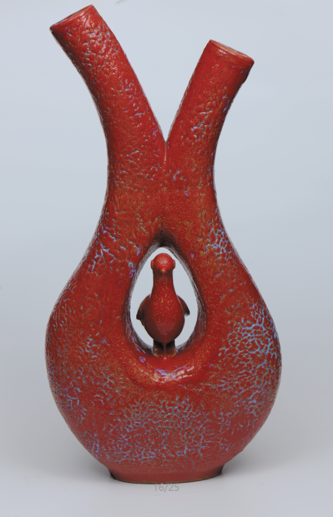 ▲陈烈汉钧瓷《红钧“异形”瓶》2001年孔家钧窑