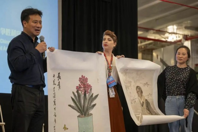 此次展览,不仅是一场令人陶醉的视觉盛宴,更搭建了中美民间艺术交流的桥梁。展览中,江苏省中国画学会会长翟优及常务理事樊蕾分别向博物馆赠送《常青》和《杜利特尔突袭》画作,并表示,希望促进两国人民的相互了解与欣赏,让人们在艺术的海洋中畅游,深化彼此的情谊。