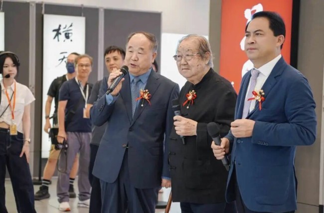 本次展览由香港大学中文学院主办,展期至11月3日。它以“文墨共生”为核心主题,突破传统呈现形式,依托创新光影技术透视书法线条,让观众沉浸式欣赏莫言书法的墨色层次与流动质感。