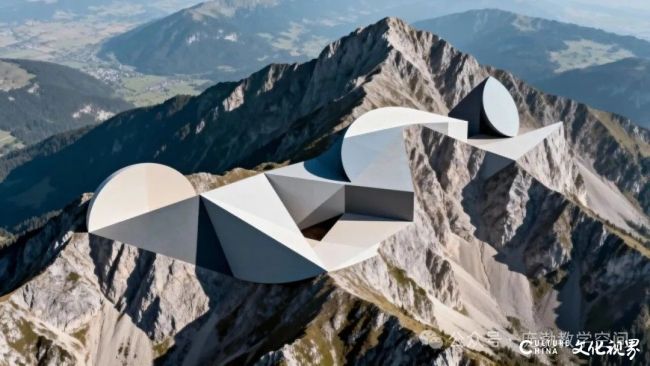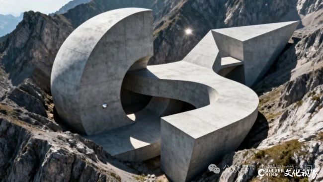 冷峻的几何块体盘桓崖际:或蜿蜒如脉,裹着山的褶皱生长;或棱锋如刃,以混凝土的冷质撑出峰峦的孤挺。它们是山之脊的“出走”——既嵌进岩壁的肌理,又以锐角与弧面,把“山有脊而巍然”的本相,凝成立体的棱线。