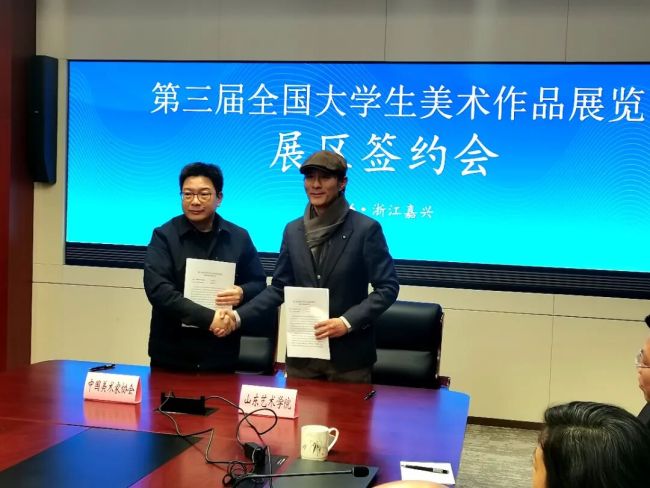 1月29日,第三届全国大学生美术作品展展区签约仪式在浙江嘉兴举行。山东艺术学院与中国美术家协会正式签署协议,成功获得“第三届全国大学生美术作品展览”艺术设计展区承办权。这标志着这一国家级综合性美术大展的重要展区将于7月在山东艺术学院长清校区山艺美术馆隆重呈现。山东艺术学院院长徐青峰委托艺术博物馆副馆长赵军代表山东艺术学院签署协议。