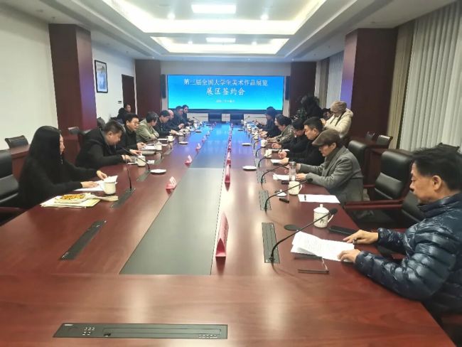 签约会议由中国美术家协会王平秘书长主持。中国美协分党组书记、驻会副主席屈健简要介绍了本次签约会的召开背景与核心议程,强调展区签约是保障展览顺利落地的关键环节,需各方协同推进、压实责任。中国文联党组成员、副主席、书记处书记诸迪指出,全国大学生美术作品展作为发掘青年美术人才、弘扬时代美育精神的重要平台,既是对高等艺术教育成果的集中检阅,也是引导青年创作者扎根时代、守正创新的重要载体。