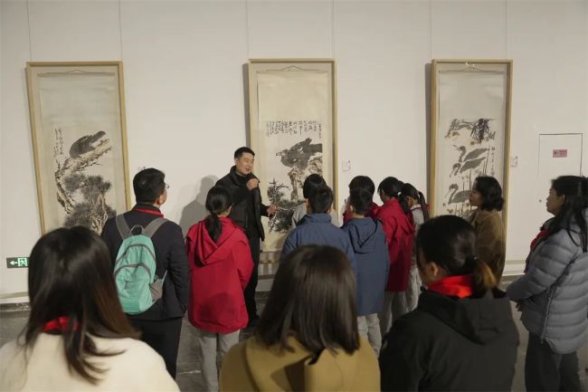 本次活动依托“齐白石在山东”文旅融合重点项目,聚焦李苦禅艺术作品展的学术底蕴展开。济南市美术馆(济南画院)公教老师以兼具专业性与趣味性的讲解方式,从李苦禅先生师从齐白石的艺术传承脉络切入,深入解读“人也学吾手,英也夺吾心”这一展览主题的深层内涵。