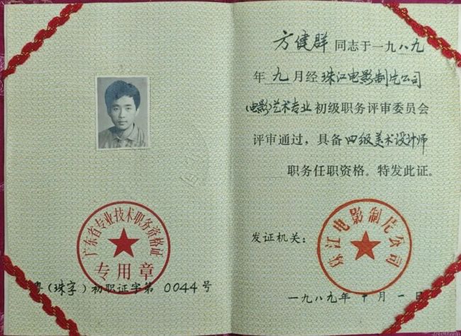 方土(时年26岁)在珠影工作期间,被广州画院聘为“特聘画家〞
