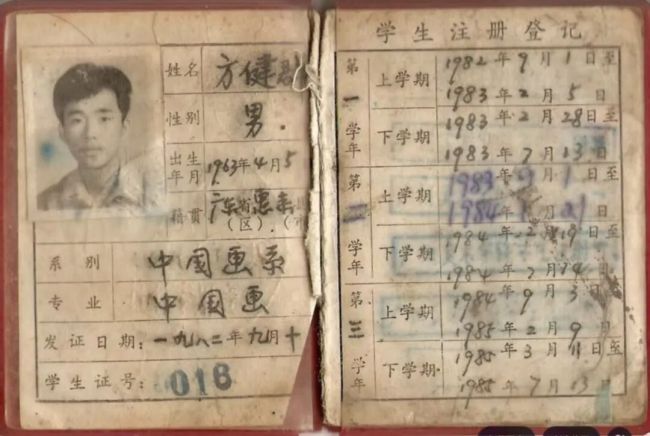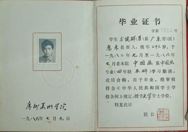 方土(曾用名:方健群)广州美术学院学生证