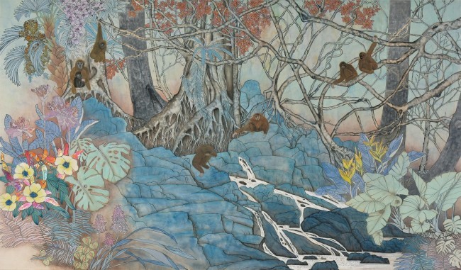 南海画风的学术价值,绝非局限于艺术技法与题材的表层研究,而是升华为对地域文脉、生态守护、时代使命的多维关照,构建起有温度、有底蕴、有担当的学术内涵,这与《海南雨林·猿影灵踪》的创作初心高度契合。