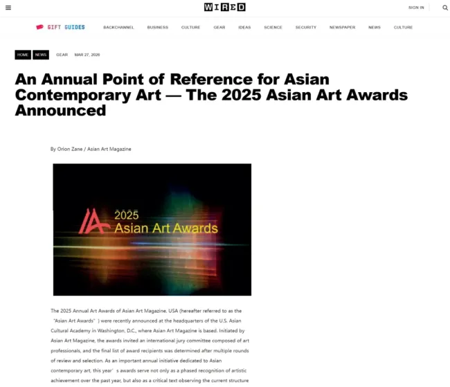 《亚洲艺术》关于2025“亚洲艺术奖”揭晓的报道