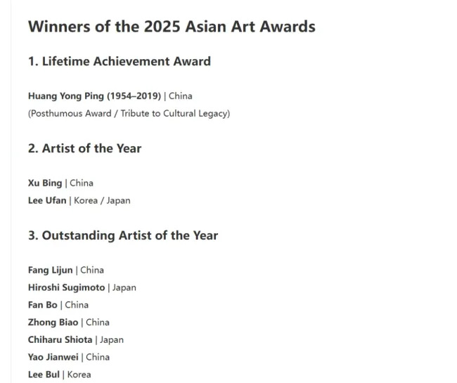 2025“亚洲艺术奖”获奖名单