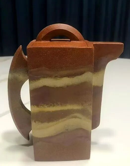 他的作品,你猛然看过去,会感到新鲜,也会感觉陌生,有的会感觉有些棱角与冰冷,甚至让你一时难以理解这壶咋用?可你一旦缓过神来,慢慢来品,仔细端详,那壶的气韵与品质便可感知,那种“悦目”与“致用”之间的平衡点也就不难把握了。