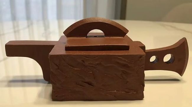 在石盾的工作室里,看到他的原创紫砂壶千奇百怪,有的像古代青铜器,有的如木作箱子,有的跟鹅卵石、太湖石一般,有的赛过大海螺——从几何形状来说,常见的方与圆自不必说,三角的,椭圆的,不规则形状的则不断涌现。你若问他这些壶都是什么样式,什么名字,可能不会得到答案。他的创作激情一旦燃烧,他就想怎么做,就怎么做,想咋烧就咋烧,信马由缰,随心而来,青岛那话“爱谁谁”。