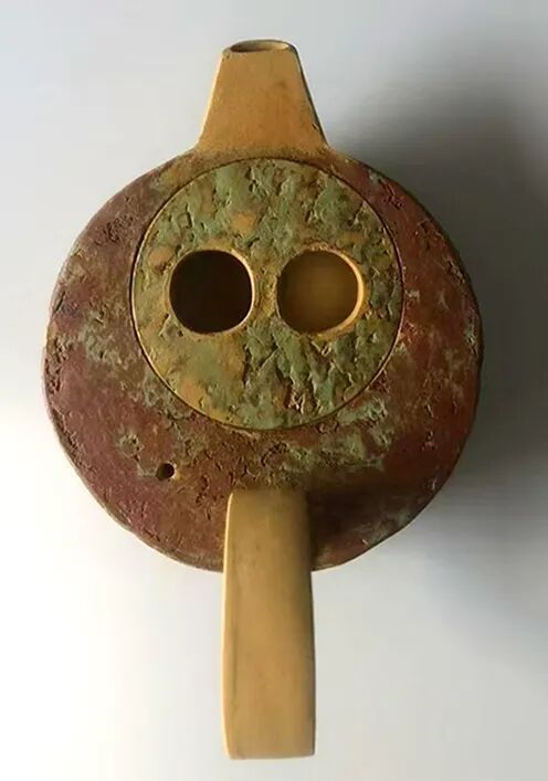 对石盾而言,与所擅长的雕塑最息息相关的艺术门类便是陶艺。他继承了父亲当年恢复发掘鲁柘澄泥砚的思路与做法,从大汶口文化和龙山文化溯源去寻找创作灵感,结合古人制陶之造型与工艺,设计出彩文陶、开片陶、镶嵌陶、仿木陶、混合陶等类型,作品题材则与日常生活紧密联系,以使当下人所喜闻乐见。