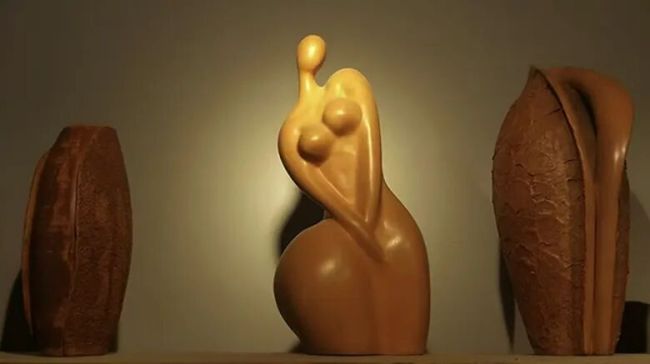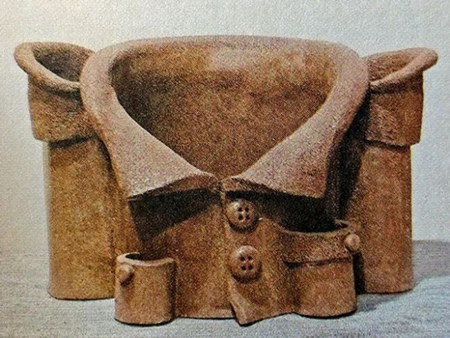 在我眼里,他烧制的那些好看的瓶瓶罐罐,当属各种花器最为有趣,有的是海贝状,有的像火焰,有的是女人的旗袍,男人的中山装,还有丰腴的美人体,都是那样夸张,好玩,有意思。