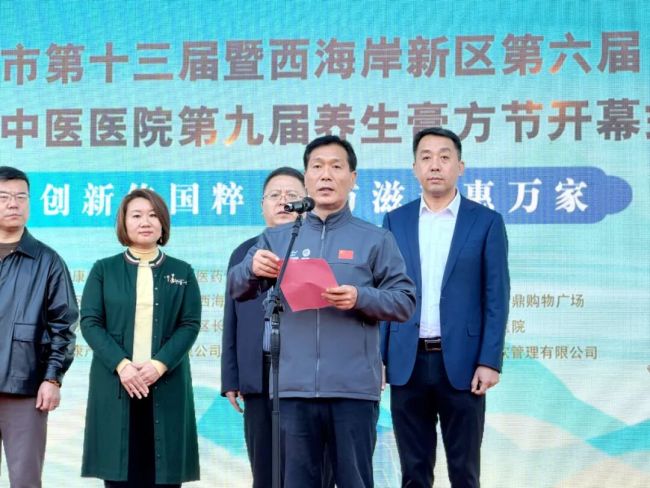 青岛西海岸新区副区长赵英民致辞,他表示,本届膏方节首次实现市区联动、深度融合,新区将以此为新起点,进一步促进资源整合共享、拓展中医药服务内涵,推动中医药在疾病预防、健康促进等领域发挥更大作用,让中医药发展成果更多更好地惠及千家万户。