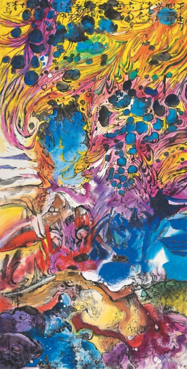 二十世纪中国画的一大进展就是色彩的再次复兴和普及,构成了主脉。而孙博文更加大胆,可以说“恣意妄为”,对于传统画法,这几乎是狂放之举。但恰恰是这个角度上,孙博文展现出了他的大胆和突破。敢于破的命题并不是一句简单的话,它包含着胆识、对事物的认识和精神气质。古人讲文有文胆,武有武德,说的是对于文质彬彬的文章表现,要气度不凡,不必缩手缩脚,这是人的精神高扬的表现,以东方哲学讲,要竭力达至天地间的那种宏阔张力;在绘画上,则要不拘陈法,敢于破解已有的笔法、章法,三百多年前的石涛尚且说“我用我法,无法而法”,今天的画家怎么就只能墨守陈规而不敢恣意妄为呢?所以,评定一个画家,不是看他的研习陈法有多好,而是要观察、辨析他的独创有多少。孙博文大胆用色堪比刘海粟、张大千一辈,美国的画家波洛克都能够在七十年前大胆的行动派,铺张画布,滴撒颜料,完全不忌讳画面的杂芜感,实际上,这种极具行动张力的滴撒充满了饱满的力量感和活生生的充盈之气。对比孙博文的那些大幅色彩飞扬的作品,可以从这个角度去阐述和体味,不可一味以“空灵寂静、谐和相契”为说辞。