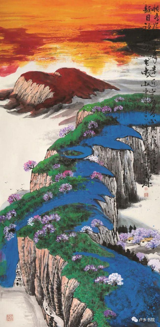 这种美在2001年的《禅意自在云深处》这幅作品上可以看到此转型阶段,在有着山石造型的轮廓中,出现了色彩的自由流动,色块的撞击,画面似乎可以听到天籁之音,色彩似乎在相互歌唱,在相互呼应,这是孙博文自己所追求的充实之为大美的精神境界,是自然大灵魂的生命写照。