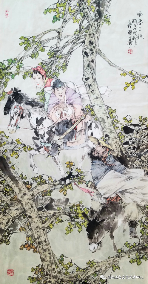 他天性中那份真性情,倾心于水浒人物图这样的题材,同契于绿林好汉那种刚毅而江湖的性格,刻印着中华文化深层次的出世与入世的心理维度空间。包括钟馗的威震、济公的诙谐、老子的睿智、板桥的清傲,均是个性鲜明地自由放达者,贯穿时空的人物风骨跃然纸上,这既是对一脉延续的文化精神的再诠释,亦是自我人生态度的张扬。