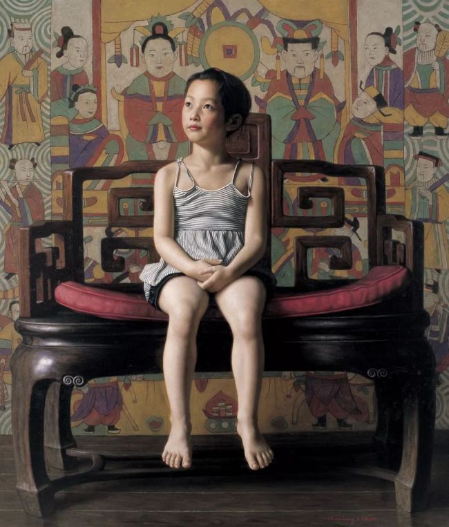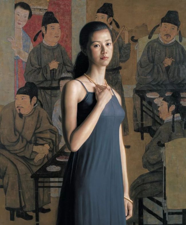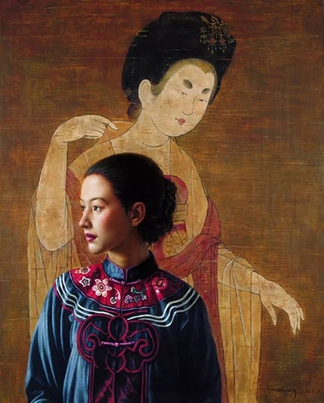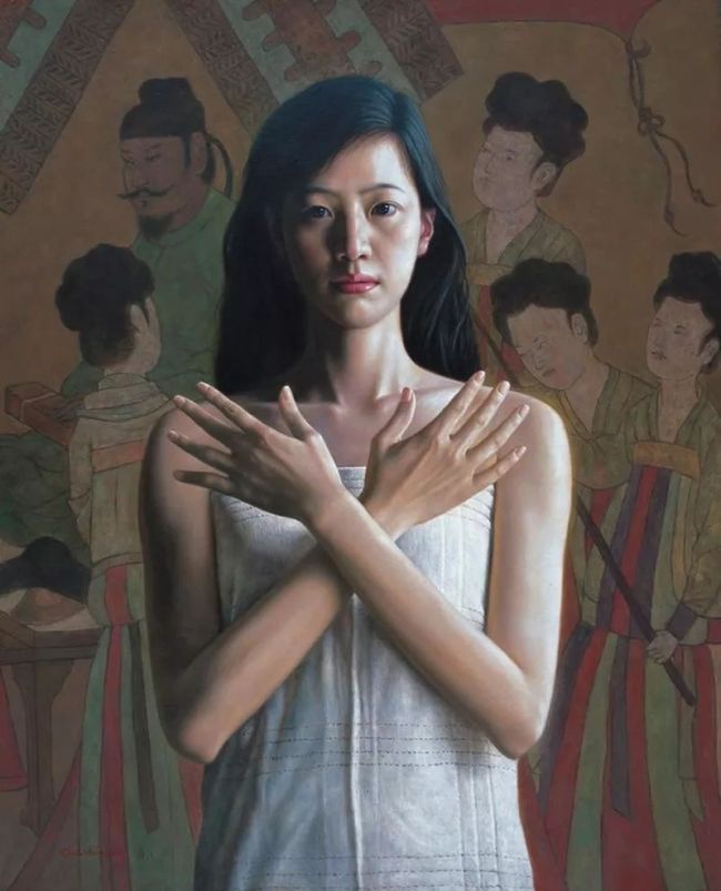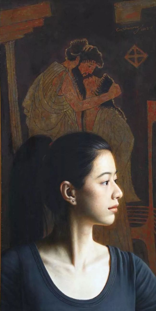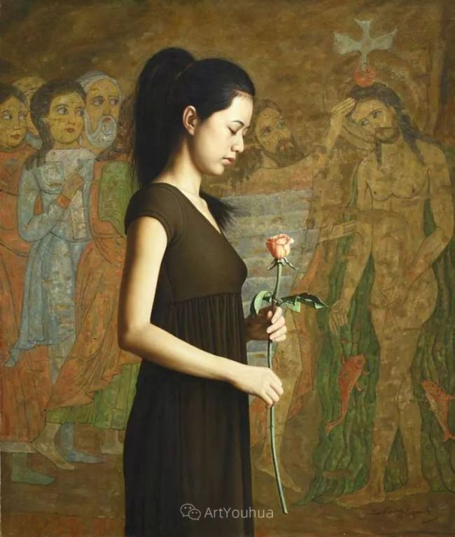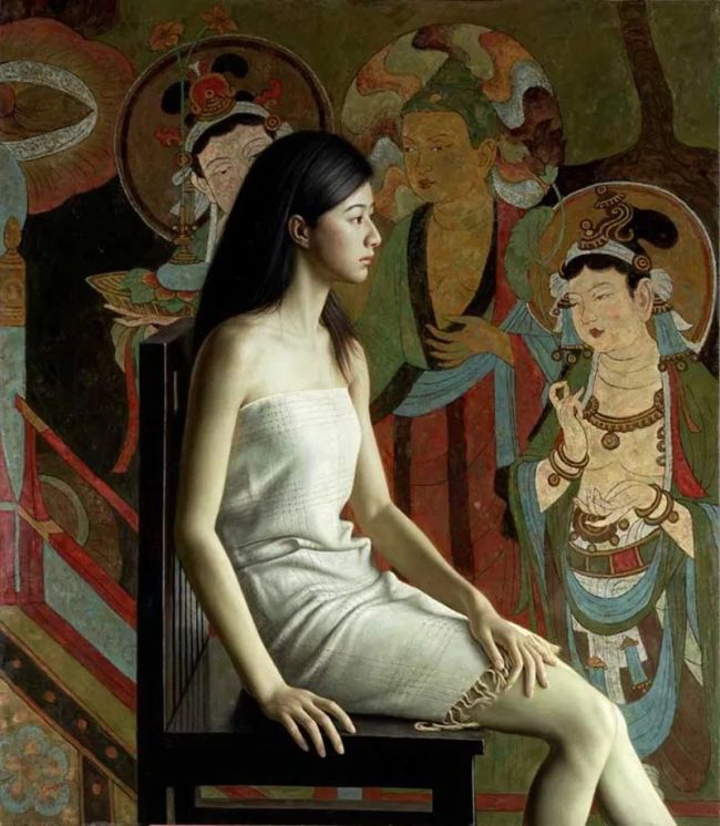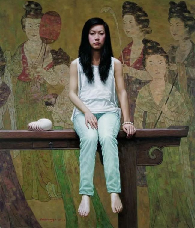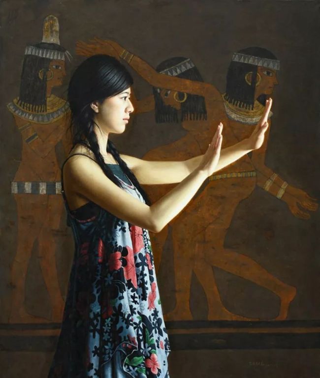 他的画面好像在追问,我们能回到从前吗?我们能和古人的心灵沟通吗?我们今天的文化价值是什么?他的思考和探索是有深度的,是一位有想象力和创造性的画家,能从题材选择和画面构成上另辟蹊径,和别人的画拉开距离,形成有个人特色的油画面貌。