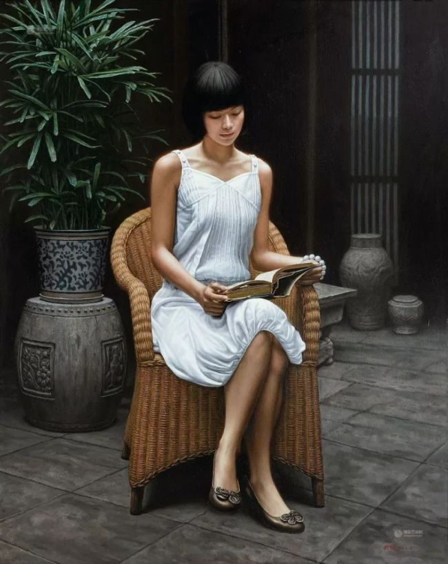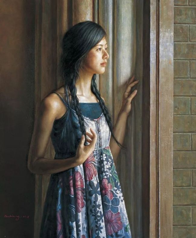 顾致农的油画世界,迎面扑来的是一股宁静、纯洁、带宗教和梦幻的气息,从题材选择和画面构成上另辟蹊径,和别人的画拉开距离,形成有个人特色的油画面貌。