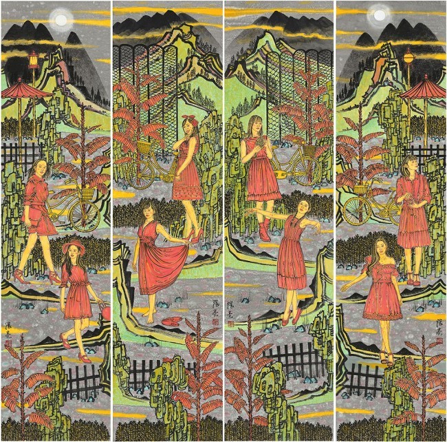 相比《幻梦青春》系列对当下都市生活的时代链接,《诗意心园》时期向内求索的情感抒怀,以及《古意新风》借古探今的溯源与求新,近期的《心园逸游》系列呈现出的是一种穿越古今、畅游山河后的豁然开朗与灵动洒脱。