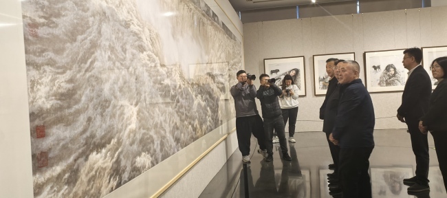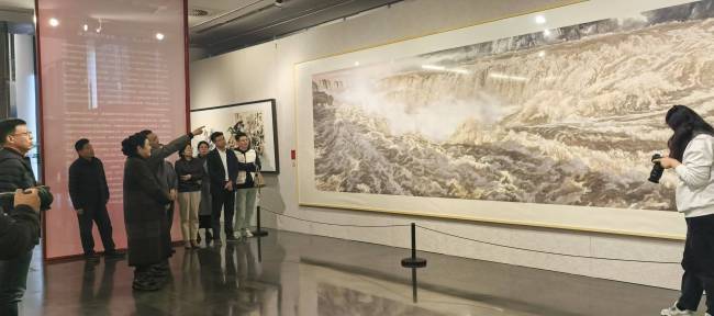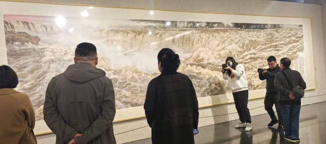 观众们在《黄河之心》前驻足良久,有的凝视沉思,有的轻声讨论,无不被这幅作品所展现的深厚情感与艺术魅力所打动。不少摄影爱好者更是架起相机,试图从各个角度捕捉这幅画作的精髓,希望将这份震撼与感动带回家中,与亲朋好友分享。