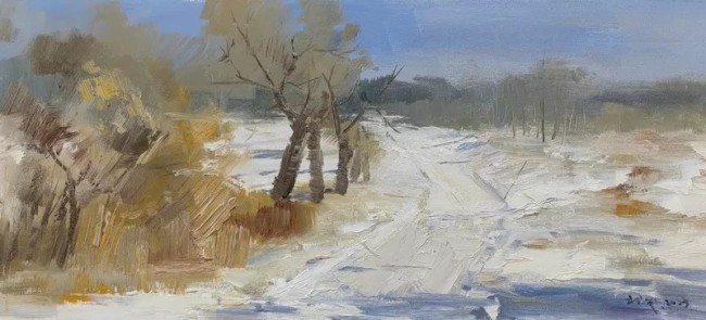 而笔触的运用,更是尽显其艺术匠心。粗犷处,如疾风扫过,留下奔放洒脱的痕迹,将山峦的雄浑、土地的质朴勾勒得极具力量感;细腻时,似细雨润物,轻柔地描摹出枝叶的脉络、水波的微漾,让画面的肌理充满了生命的呼吸感。色彩与笔触交融,并非简单的堆砌,而是有机的碰撞与共生,让每一幅画都拥有了独特的气韵。他把对自然的热爱与体悟,悄然融入色彩的晕染和笔触的律动里,使得观者目光所及,不仅是视觉的享受,更是能透过画面,触摸到自然那鲜活而诗意的脉搏,仿若置身于画中那片被艺术化了的天地,与山川草木一同呼吸,感受着时光在色彩与笔触间缓缓流淌的静谧与美好。