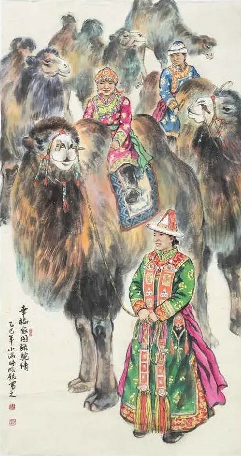 尤为可贵的是,王晓银的艺术始终贯穿着一条清晰的人文主线——对裕固族人民及其生活变迁的持续关注与深情讴歌。他的骆驼,是叙事的主角,亦是时代的见证。通过描绘人与骆驼和谐共处的生动场景,他实际上是在记录一个民族的文化记忆、生存智慧以及在时代大潮中的“新变化、新生活”。画笔之下,骆驼不再是单纯的劳动工具或风景点缀,而是裕固族文化血脉中不可或缺的一部分,这种记录,饱含温情与敬意。