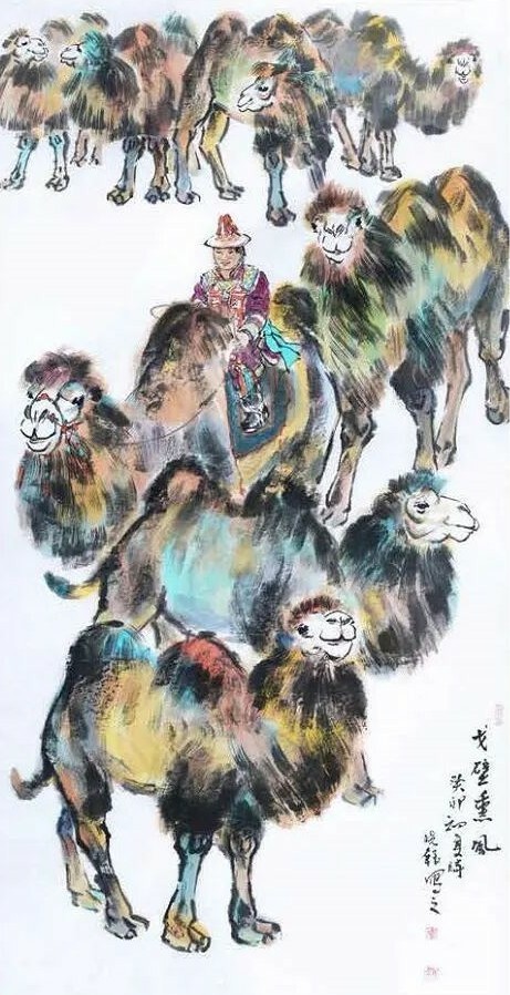 王晓银将骆驼这一意象,从自然物象提升至精神象征的高度,以其诚恳质朴的艺术态度、独具匠心的彩墨语言和深厚的人文关怀,成功塑造了承载着裕固族文化基因与时代精神的“大漠脊梁”形象。他的艺术世界,是骆驼的世界,是裕固族人民的世界,更是他自身生命境界与艺术理想的真实映照。在这片由彩墨构筑的浩瀚时空中,我们看到的不仅是骆驼的形神,更是一种生生不息的生命力量。