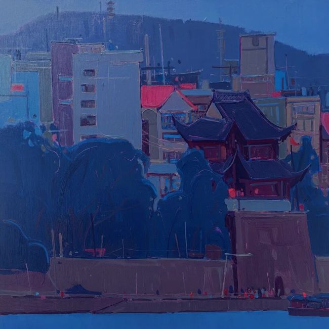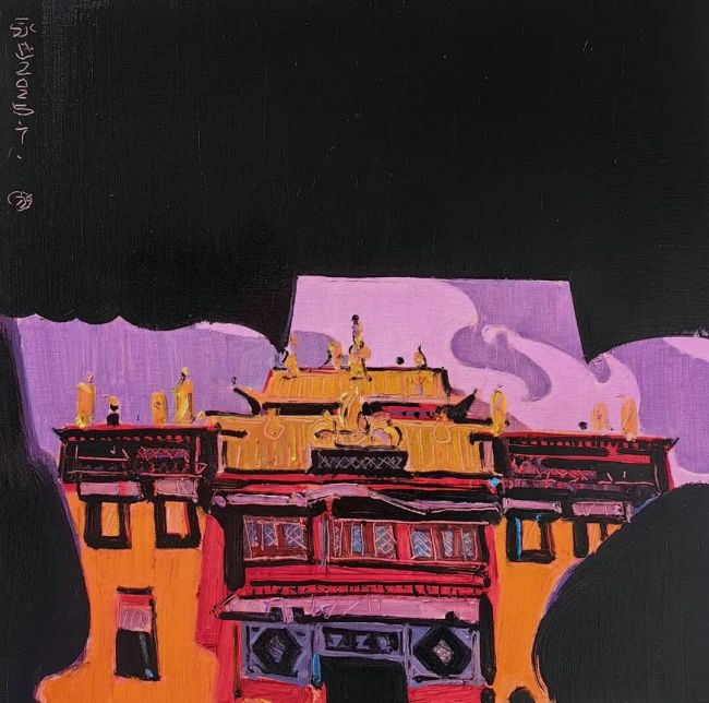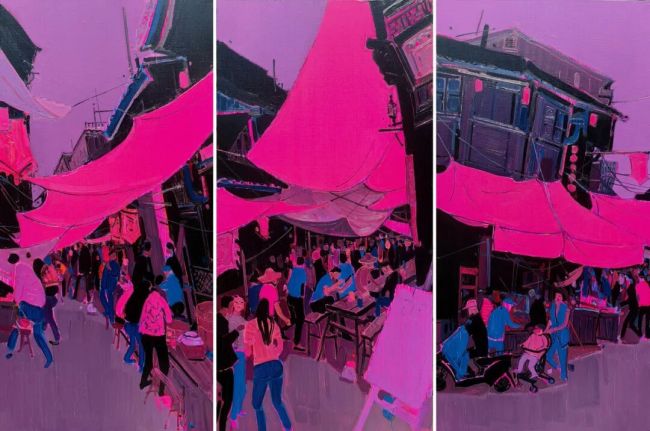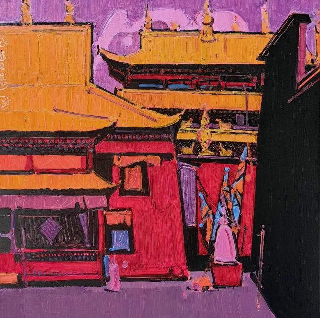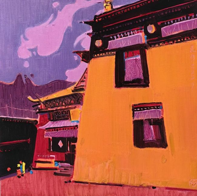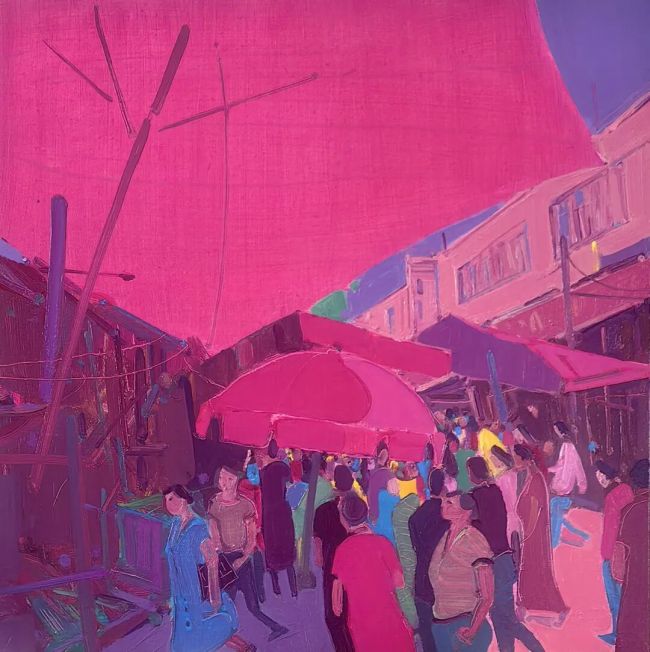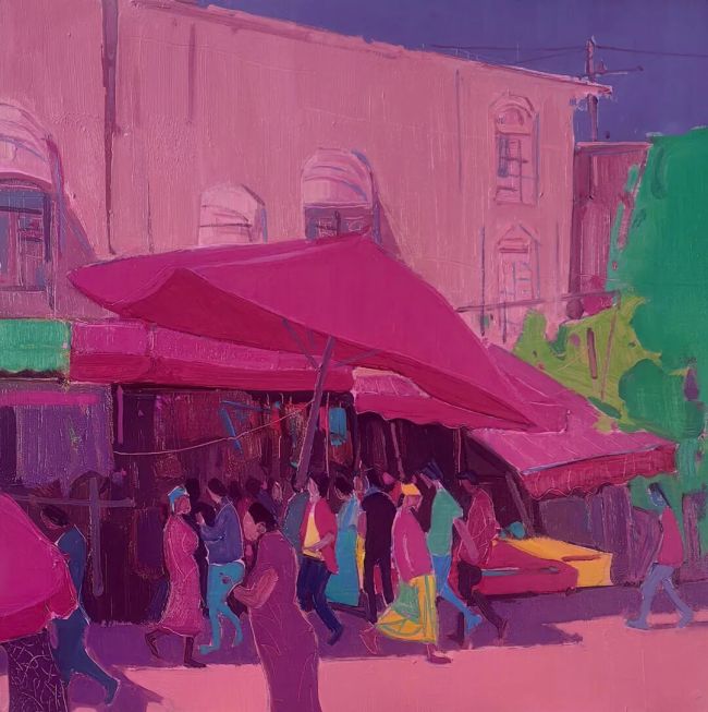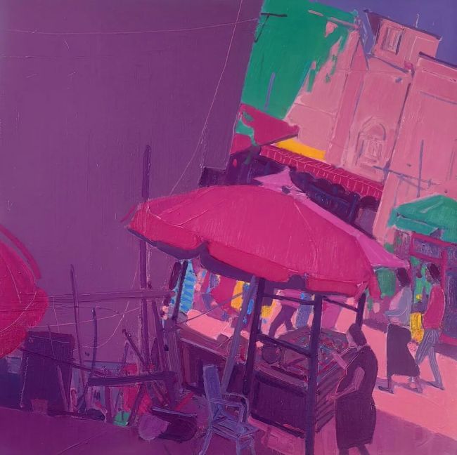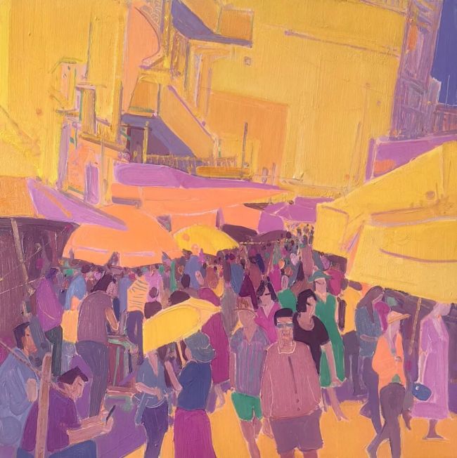 古城喀什之美自不必说,登昆仑塔俯瞰其雄浑悲壮之宏放足矣,倘再美化添彩唯恐画蛇添足,倒是汗巴扎进门口之狂热的商业闹街,让画笔蠢蠢欲动,久违的暖调子瞬间被激活,黄色的光芒在画布上得到尽情释放。