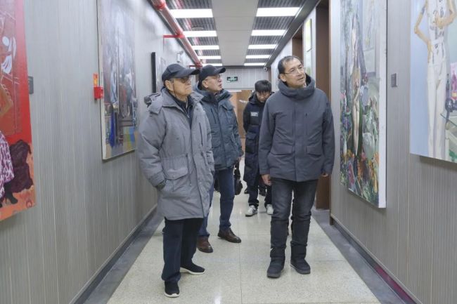 中央美术学院老先生、老教授靳尚谊、杜键、潘世勋、戴士和、丁一林、高天雄,中央美术学院院长林茂参观油画系