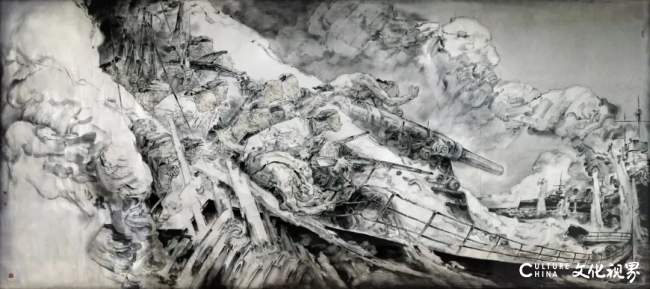 《胜利》并非于新生对抗战主题的首次探索。在此之前,他创作的《甲午海战》已入选山东省重大历史题材选题,这幅5米多长的作品,虽聚焦清代甲午年间的抗争,却与《胜利》有着精神上的共鸣。甲午海战是中华民族早期反侵略的重要篇章,虽然时间不同,但那种面对侵略绝不屈服的精神,和抗日战争是一脉相承的。