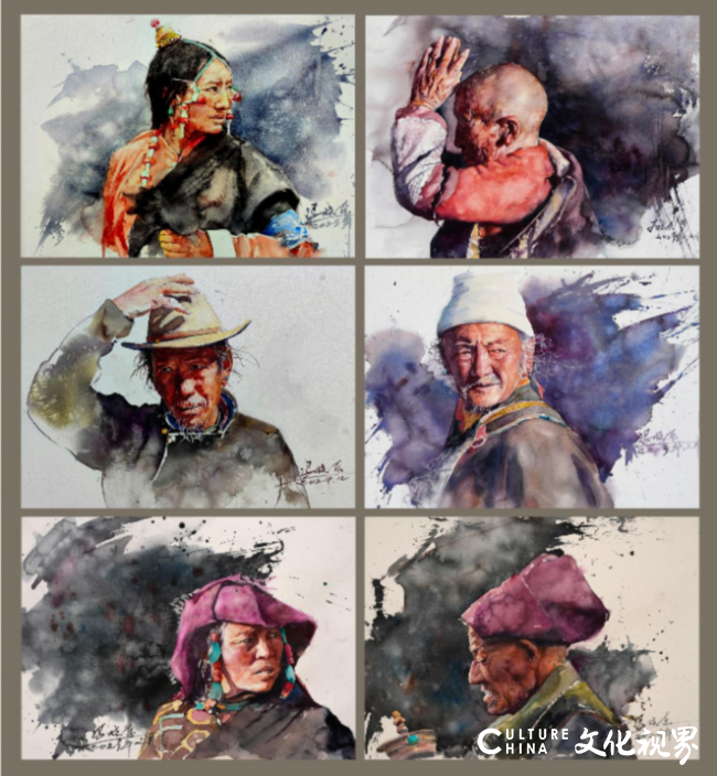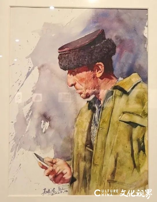 《边疆人物组画》是冯晓东馆长作为一名文化志愿者,先后随地方文旅系统组织的专业文化志愿服务团队赴新疆、西藏、内蒙古、宁夏等少数民族地区开展系列文化惠民服务活动,并以“艺术创作志愿行”为工作目标,精心创作的一批边疆风情系列作品。本次以12件新疆、西藏人物系列水彩画为主题,通过个性化艺术语言,展现边疆自然人文之大美,讴歌边疆地区时代发展新貌。旨在以原创作品为载体,讲好中华民族共同体故事。作品没有选择宏大叙事,而是将视角聚焦于边疆人物个体,从人物的神态、表情与肢体语言中挖掘情感深度。通过细腻的人物刻画让人感受岁月沉淀与生命力量。与许多宏大主题展现的作品不同,《边疆人物组画》着力于微观叙事与人文深耕。从平凡人物的日常发现美与感动,用画笔捕捉那些容易被忽视却又极具代表性的瞬间。展现了创作者对人文精神的深度挖掘与细致呈现,从而赋予作品质朴而深沉的情感力量。它将边疆独特的人文风貌与生活习俗生动地展现出来,让更多人可以通过作品了解边疆文化的多元性与独特魅力,促进不同地域文化间的交流与互鉴。该作品也为水彩(粉)画的创作题材与表现形式提供了新的范例,为地方美术创作的建设与发展留下精彩的一笔。