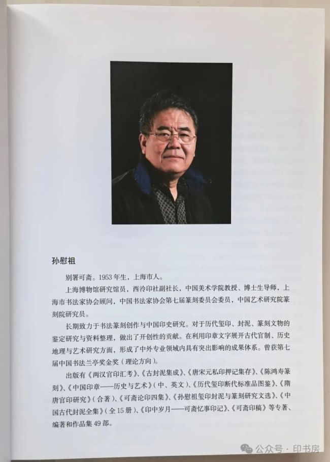 2025年7月,孙慰祖著《中国印章:历史与艺术(修订本)》由西泠印社出版社出版,全面梳理作为文化载体的印章与作为艺术样式的篆刻的发展历程,不仅以宏阔的视野、扎实的论证成为富有学术性的中国印章通史巨作,也以生动的描述、精美的图片成为学习篆刻的优良普及读物。该书是15年来相近书稿的第四次出版,见证了孙慰祖40年来进行印章综合研究和篆刻艺术推广的学术坚守。