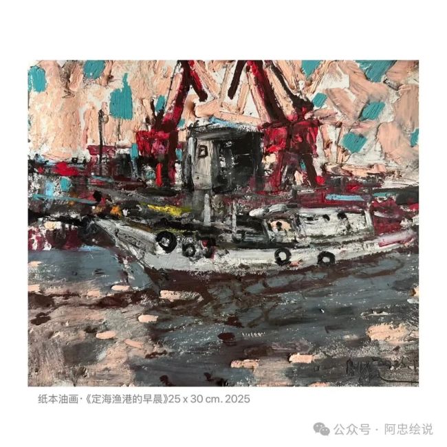 尽管已经不见那些入画的、以传统的黑色、红色、蓝色为主色的木船,但是铁壳渔船也具有相当的美感。码头一侧停放的两艘涂饰一新的木船,威风凛凛架在那里;一是为游客打卡所用,一是为我们留下怀旧的念想。我想,有时候我们的眼睛也不要只盯着老木船,而需要改变一下自己的审美习惯。