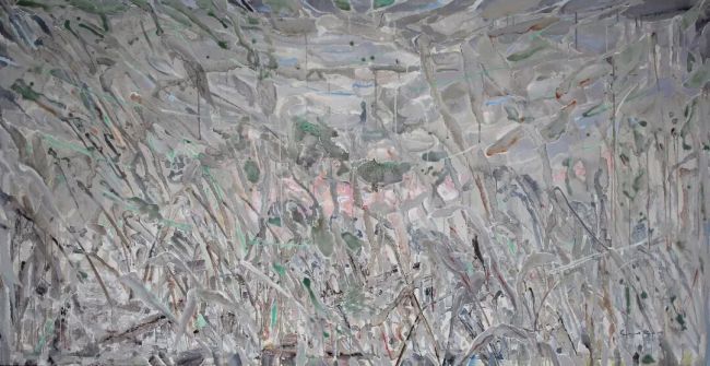 中:罗奇《岭南先声—何香凝》245cm×88cm布上油画2022年罗奇