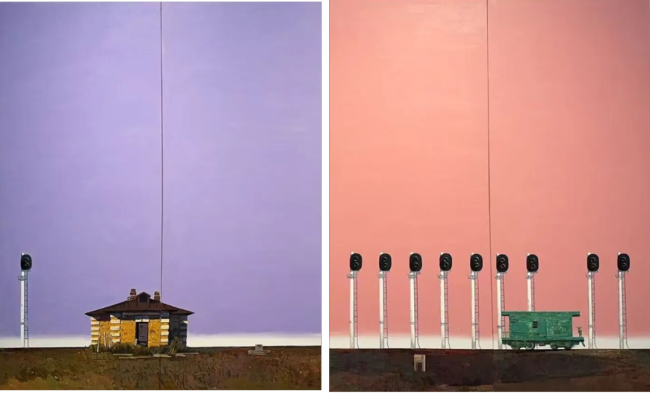 右:梁宇《信号灯系列之二》220×180cm油画2011