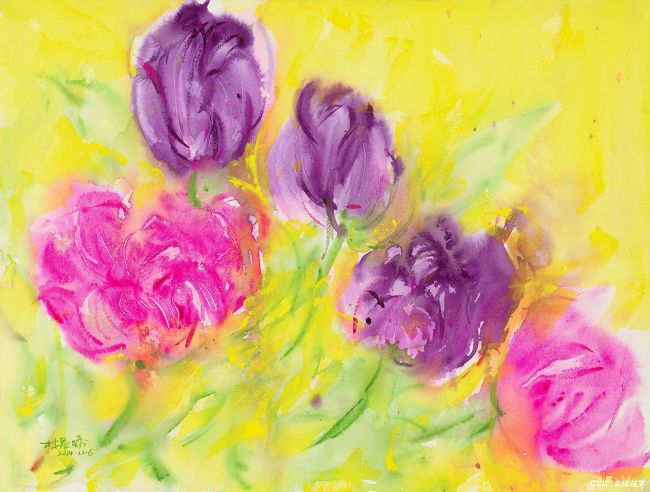 林晨曦用自己的心灵直接去感受每一朵花,它们或恣肆、或妩媚、或挺拔、或温柔、或衰败、或轻灵、或独自美丽,或结伴绽放……林晨曦把自己对生命的热爱融入在画笔里,蔓延在画纸中。他总说,“我的花画给每一个热爱生命的人。”