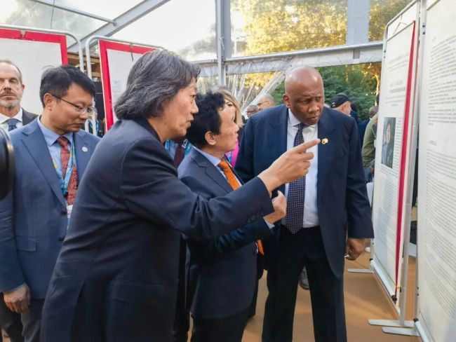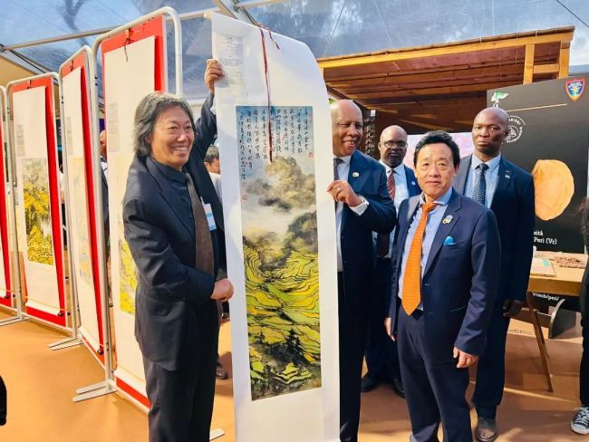联合国粮农组织总干事屈冬玉和莱索托国王等嘉宾观看丁杰梯田主题中国画作品展