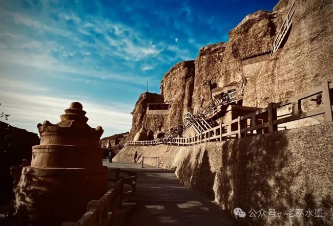 立于岩崖之上,满眼的黄褐色,仿佛握住了时光的砂砾——那是榆林窟岩壁的沉厚,是大地荒漠的肌理,更是大自然馈赠给西部的色彩勋章,让无数画家心驰神往,在纸间晕染出的是西部“大道至简”之风。