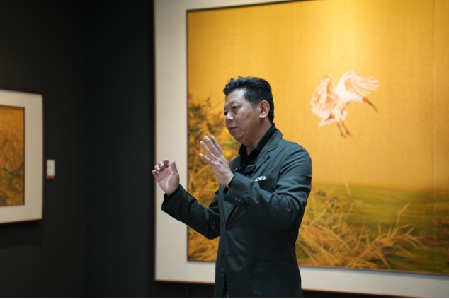 从技法上看,他的“新宋式”系列延续宋画“格物致知”的理法精神,又在已完成的画面上叠加色彩、泼洒云气。