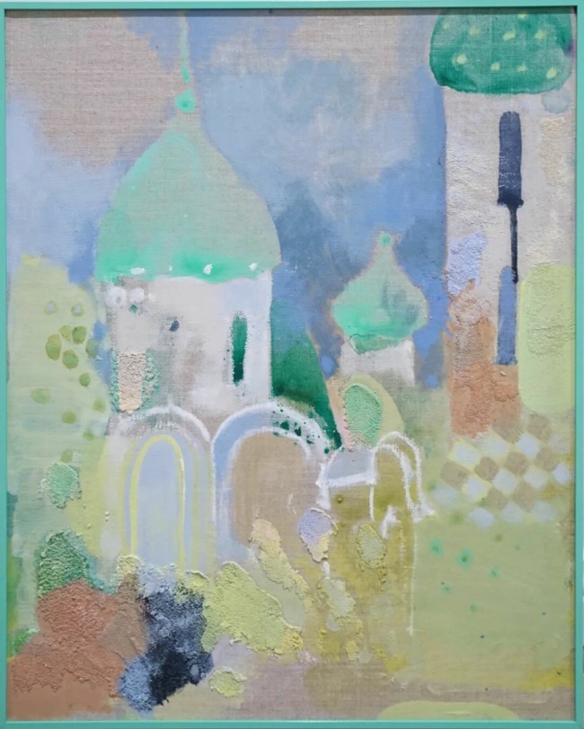《叠城》所展出的作品几乎都是倪蓓蓓这两年在上海工作室完成的。相较以往,这批作品的下笔和色彩的干练显得更为果敢,也更为松弛。我们很容易猜测造成这种结果的原因:她在上海,不需要在作品中“讲点什么想法”、只需要在作品里“描述些自己的感受”;她也不需要冲着某些目标而面对作品,只需要延续自己的状态面对画面即可……因此她就放松、无谓,也就果断了——果断也意味着不讲究对错,只讲究做不做。