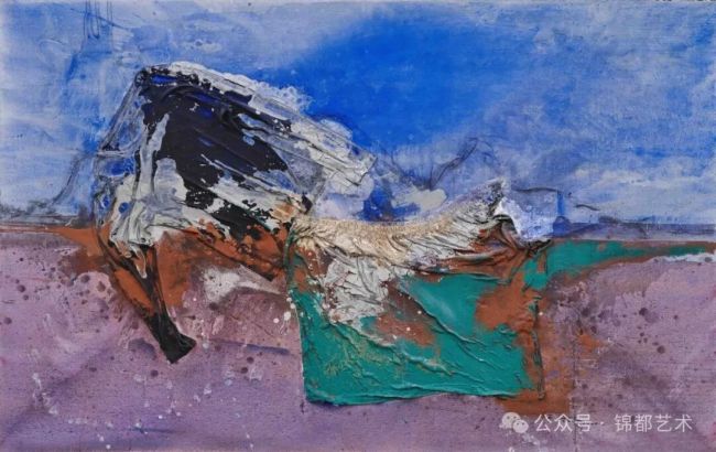 “骋怀”,是创作的真谛。艺术家之手引领材料在山川意象间驰骋,实则是心灵在无垠宇宙中的遨游。笔在画布上游走,如身在山壑间跋涉;心的飞翔,则超越峰巅,直抵星空。这是一个“物我两忘,天人合一”的瞬间,画家化身造物者,在迹象的生成间,主宰着自我心象宇宙,实现从“眼中山”到“心中山”,再到“画中山”的终极蜕变。