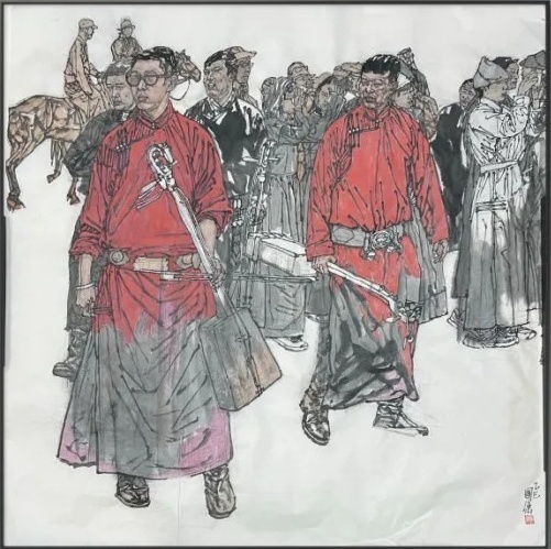 马国强:现在科技发展了,不用照相机是不可能的,即便当年的黄胄先生,他也用照相机,好处是它可以定格难以捕捉的瞬间,生活中很多瞬间是速写也赶不上的。此外,深度描绘的帮助,有些大创作,靠速写的寥寥数笔,是没法深入刻画的,要刻画人物的情绪、表情,相机则有很大的好处,只是要区分,参考相机不等于依赖相机。