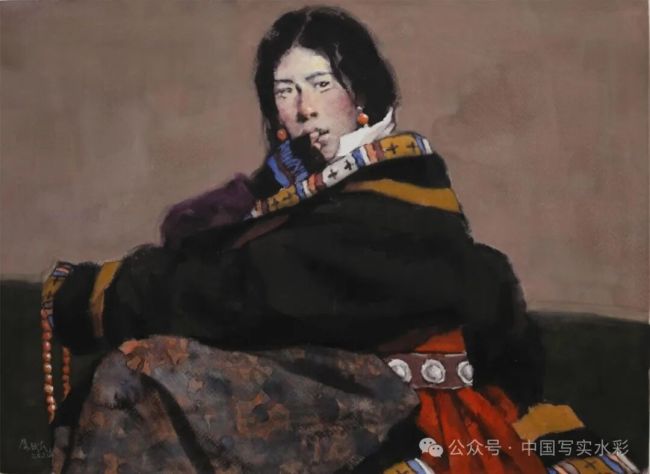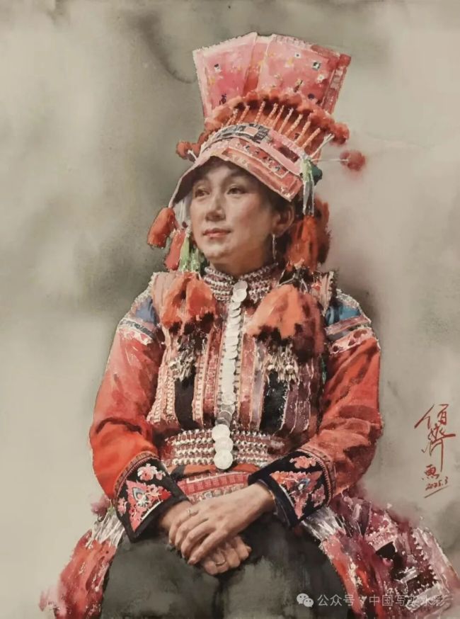 马百齐 穿戴民族服饰的花腰彝族姑娘75x50cm